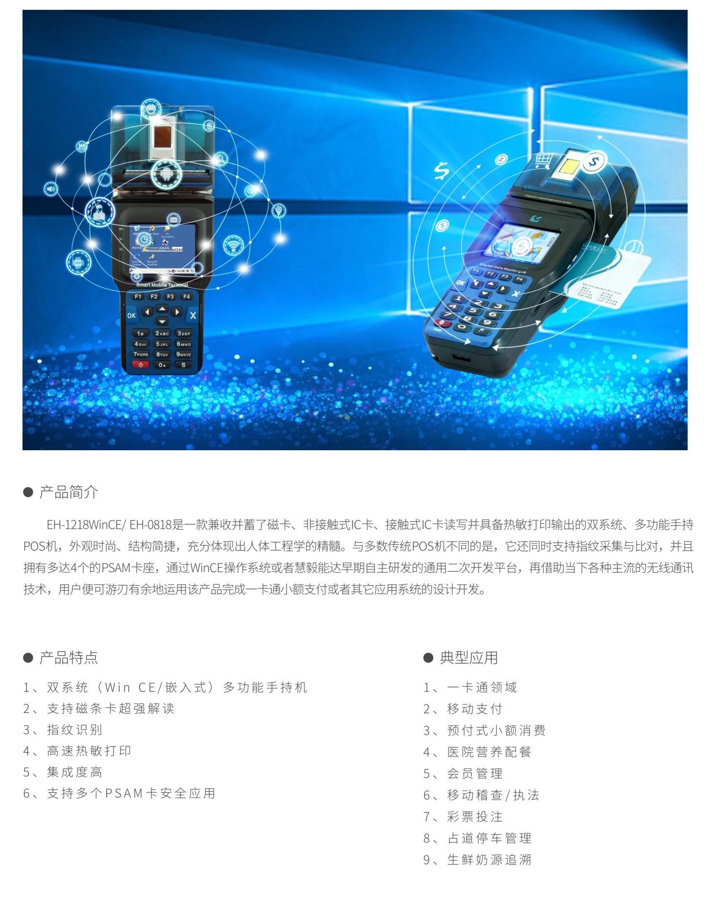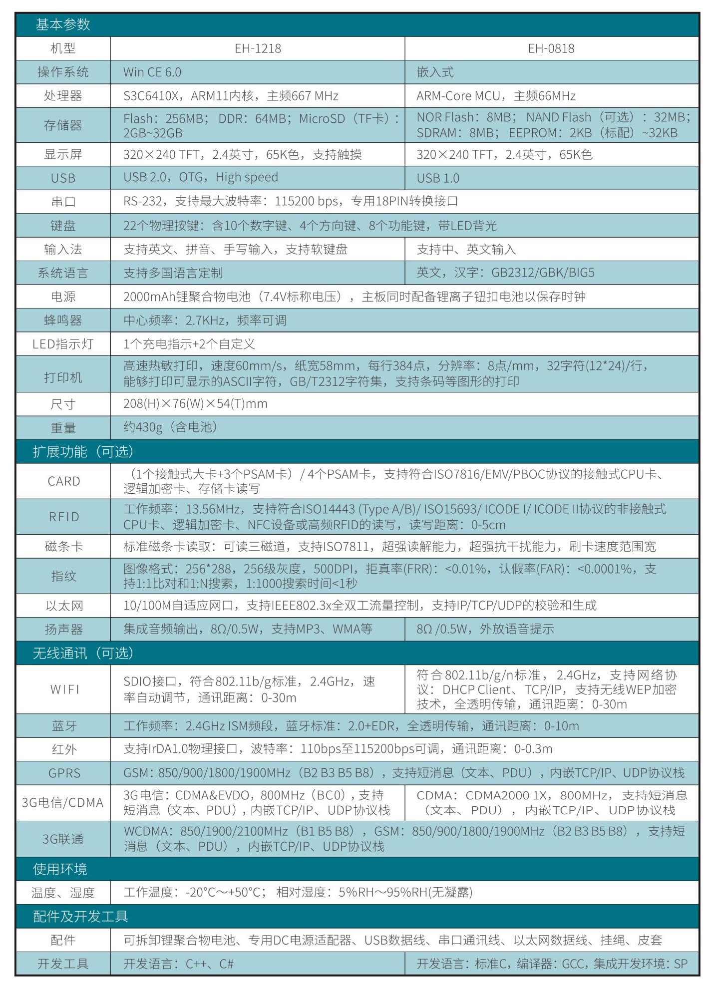 EH-1218WinCE/EH-0818 Multi functional Fingerprint Color Screen Handheld POS Machine