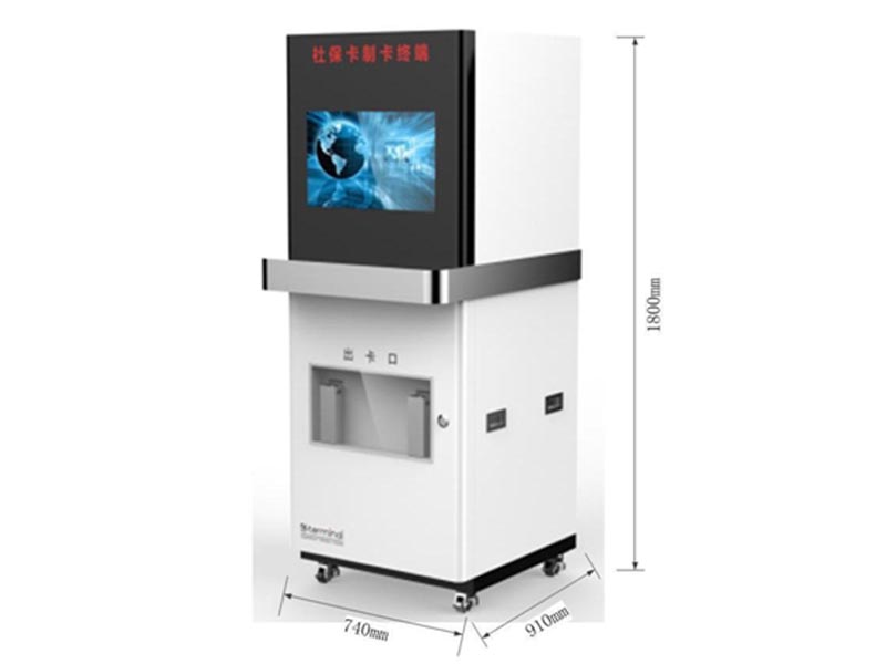 一款采用智能化技术、集成化技术,实现与线上无缝连接、大批量、可制作多种三代社保卡的服务终端。支持12种银行卡;超过2000张卡存储。